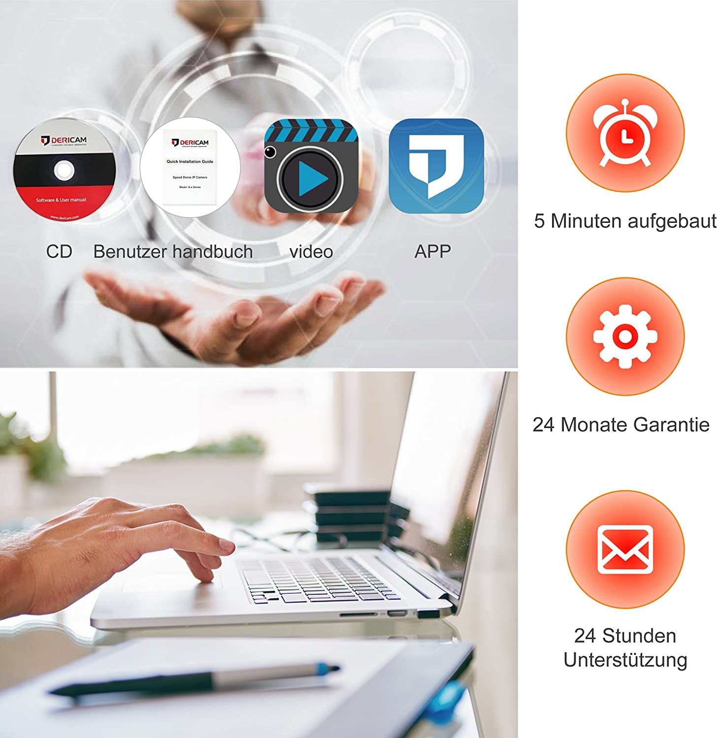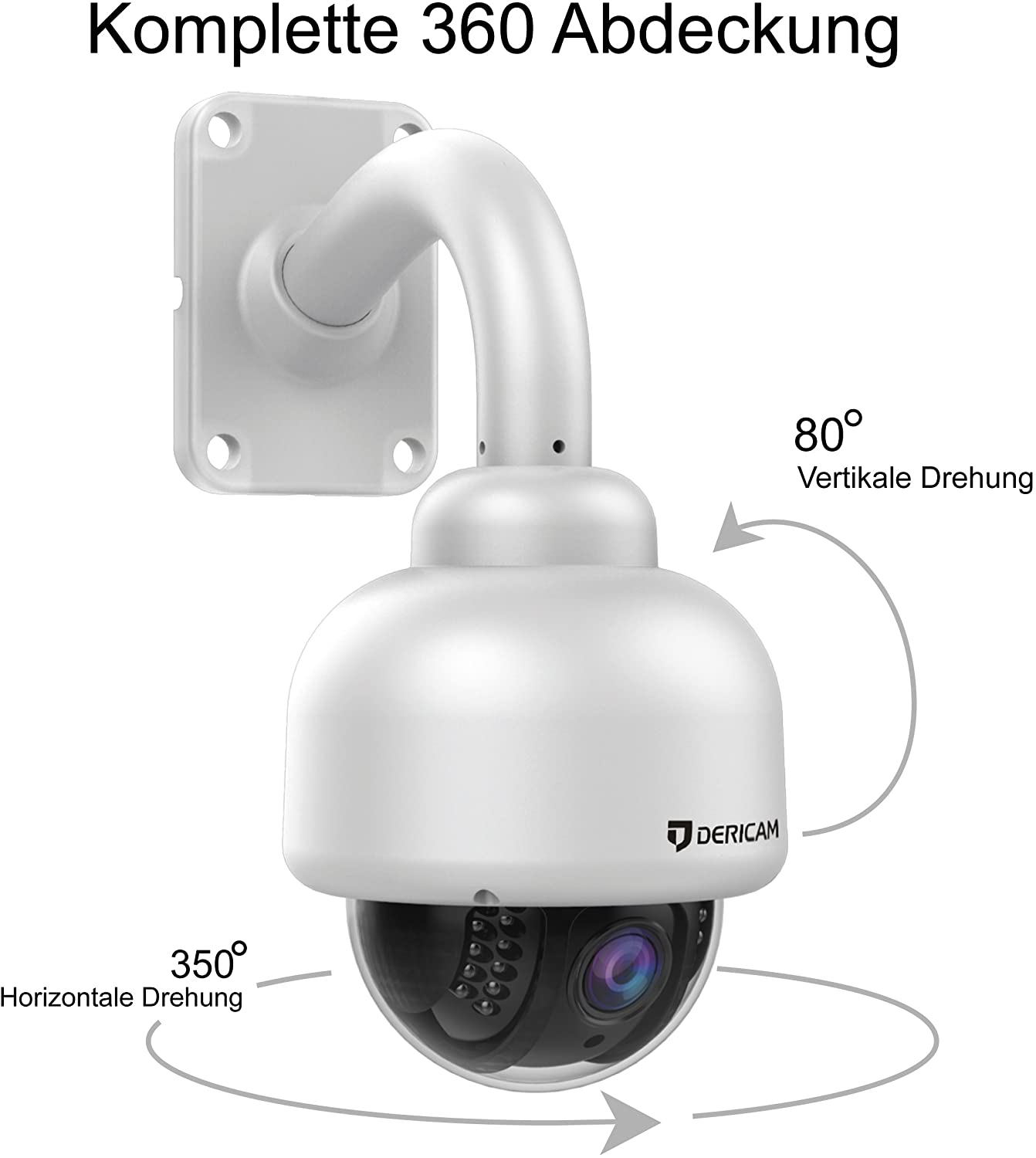 - 1080P High-quality Pan/Tilt/Zoom. Dericam PTZ Surveillance Camera, 1080P live videos, 1920*1080P picture quality, support 355° Horizontal Pan & 90° Vertical Tilt & 4X optical zoom, no blind spots left, commercial grade surveillance camera.